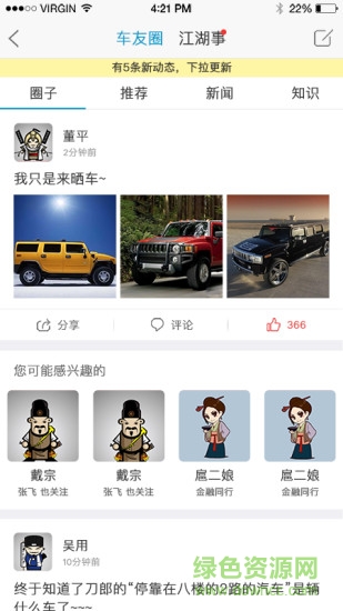 并致力于打造出一个富有江湖气息的车主社交平台,让车主通过互伴可以自由吐槽,实现情感宣泄,结识有趣的人。