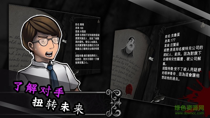 拉米亚的游戏室游戏,游戏中你被拉米亚拉到了一个阴暗的房间,需要与不同的对手进行卡牌游戏对战才能逃脱出去,每个人都似乎有着一些阴暗面,从对手的话语中找到破绽,战胜他们逃出去,到底结局如何呢?感兴趣的用户就快来绿色资源网下载吧!