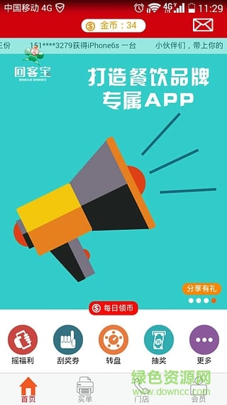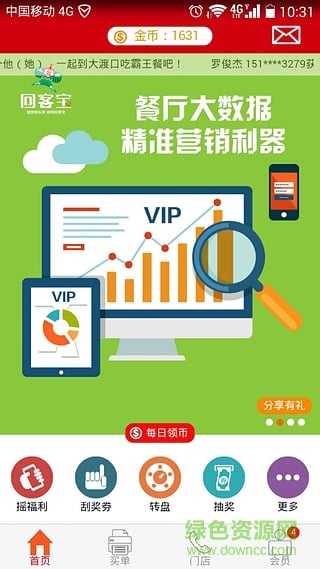 回客宝app是专为餐饮界店铺设计的一款营销管理软件,通过该软件能够快速的分析餐厅的各项数据,为你出谋划策,提供精准的行销利器,开发更多的新客源,同时留住回头客,快速增加店铺销售量与收益,还有幸运大转盘抽奖活动,更多惊喜大奖等你来参与,快来绿色资源网下载吧!