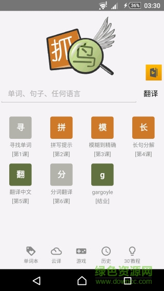 抓鸟翻译手机版是一款轻巧好用的手机翻译软件,不仅可以查找单词学习还有长句分解、分词翻译等特色功能,是你英语单词和语法学习的好帮手,快来绿色资源网下载吧!