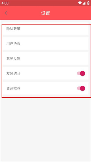 3、点击界面中的相关按钮进入设置页面,可查看隐私政策用户协议等功能选项。