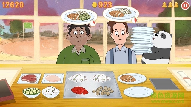 翻炒表演道具免费版(StirFry Stunts),一款由美国动画《咱们裸熊》改编的手机休闲经营类游戏,你讲扮演白熊厨师,不断地根据客户的要求作出他们喜欢的食品,更有两只可爱的服务员熊随时为他们表演,实在是逗趣可爱,感兴趣的用户就快来绿色资源网下载吧!