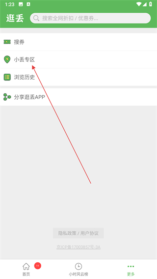 2、在更多功能页面,点击小丢专区,进入小丢专区的页面。