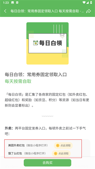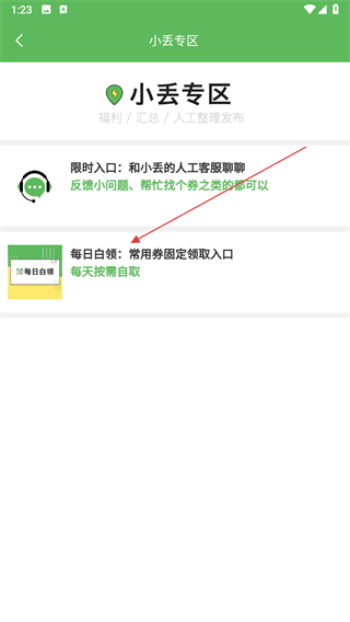 3、在小丢专区的页面,点击每日白领常用券固定领取入口。