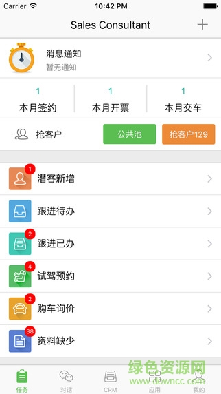 汽车销冠app是一款汽车销售管理手机软件,用户可以查看最新的订单情况和进行客户的跟进管理,同时对于合适的客户订单还可以进行抢单,轻松提升销售业绩,喜爱的朋友赶快到绿色资源网下载使用吧!