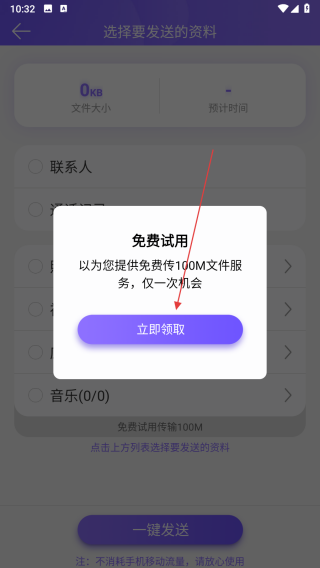3、出现免费试用提示弹窗时,点击立即领取按钮。