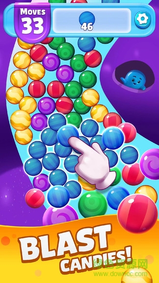 简单上手!点击相匹配的成堆糖果将其消除。四颗以上的糖果会组成一颗巧克力糖,能够立刻消除一大片糖果!将巧克力糖相互组合可以创造更强力的巧克力糖。依据策略顺次激活巧克力豆将糖果一扫而空完成挑战!小菜一碟!