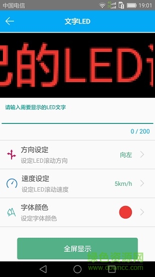 led跑马灯屏软件是一款非常好用的led显示屏app,可以在手机屏幕上模拟出led霓虹灯的效果,支持选择字体颜色、大小等,欢迎喜爱的朋友到绿色资源网下载体验!