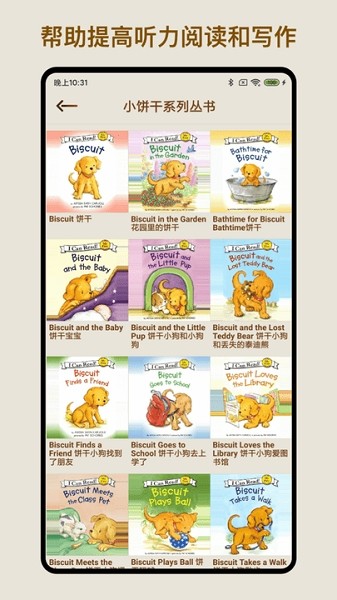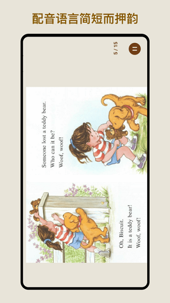 伴读英语绘本app是一款为少儿提供英语绘本阅读学习的应用软件,界面简单干净,内容丰富多样,有各种各样的英语绘本可以阅读,还提供多种朗读形式的绘本以及配音吸引孩子们的阅读学习兴趣,培养大家的英语发音能力,好用又实用!