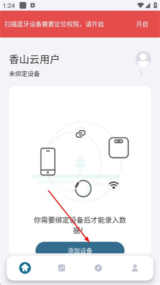 1、在香山智能的主页面,点击添加设备,进入设备选择页面。