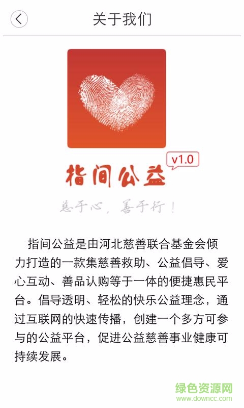 指间公益是由河北慈善联合基金会倾力打造的一款集慈善救助、公益倡导、爱心互动、善品认购等于一体的便捷惠民平台。倡导透明、轻松的快乐公益理念,通过互联网的快速传播,创建一个多方可参与的公益平台,促进公益慈善事业健康可持续发展。