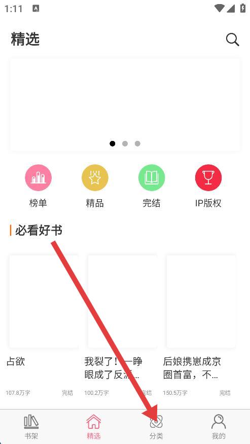 1、打开香网小说app,点击底部导航栏中的分类选项。