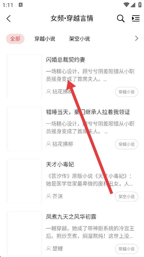 3、进入所选小说类别页面后,浏览小说列表,点击想要阅读的小说。