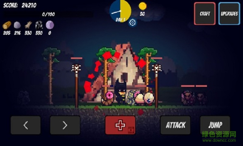 生存游戏内购修改版(Pixel Survival)是一款玩起来非常有趣的像素策略生存游戏,玩家在游戏中,收集生存材料,打败世界中的怪物,经营自己的小生活。你要劈柴、挖矿、防御抵挡怪兽。欢迎来绿色资源网下载。