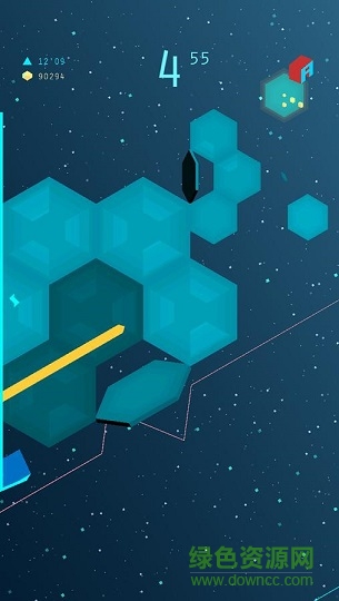 玩家将利用点击屏幕两侧的方式,控制一条类似波浪的直线,在一个充满六角边形障碍的场景中不断穿梭。