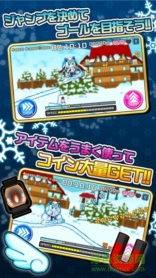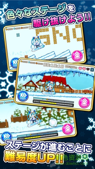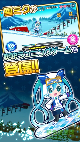 雪初音跑酷游戏,可爱的雪初音又回来啦,这次我们将在雪山上使用滑板来进行跑酷,不断收集路途中的各种道具和金币,获取更多的积分,前往终点成为第一,还可以随时和全国的对手进行对战哦,感兴趣的用户就快来绿色资源网下载吧!