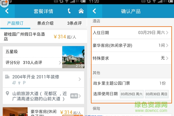 经过条件的设定之后,携程网会根据你的条件为了展示出适合你的旅游套餐。用户选择自己喜欢的旅游套餐,点击进入,就能旅游套餐中就已经保护旅游点门票和酒店的预订。我们只需填写相关的入住信息,就能购买旅游套餐了。对于短途旅行,这样一站式的套餐,让用户省下不少的时间。