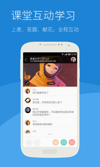 2.课堂实时在线互动,支持语音、文字、图片公屏消息