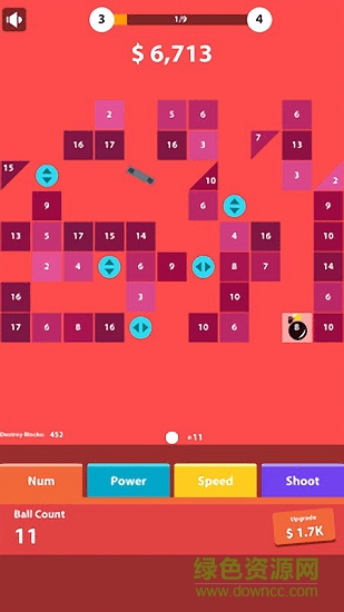 《闲置小球爆射》释放手指进去发射,方块快速的被破坏,通过球球来打砖块,将上面的数字给消除掉,多种不同形状的方块来尽情的挑战,关卡多,刷新你的高分。