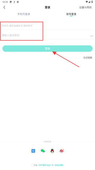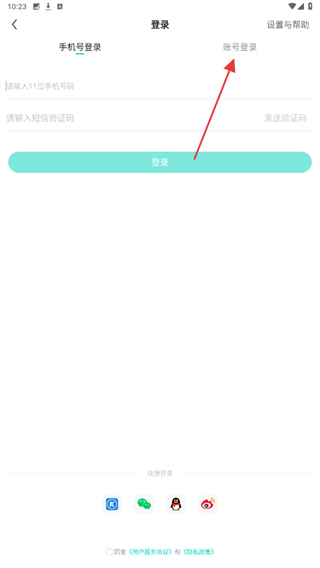 2、进入登录的页面内,点击账号登录的按钮。