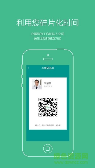3、二维码名片:医患全新的联系方式。分隔您的工作和私人空间。甄选患者,轻松与患者建立联系,充分利用您碎片化时间。