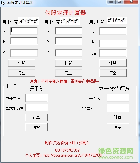 用于计算a2+b2=c2