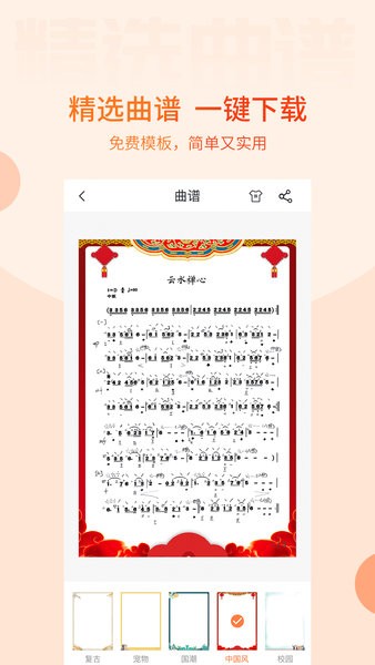 每一个都很精美,到曲谱库查找和下载。还有免费实用的曲谱模板让你选择。