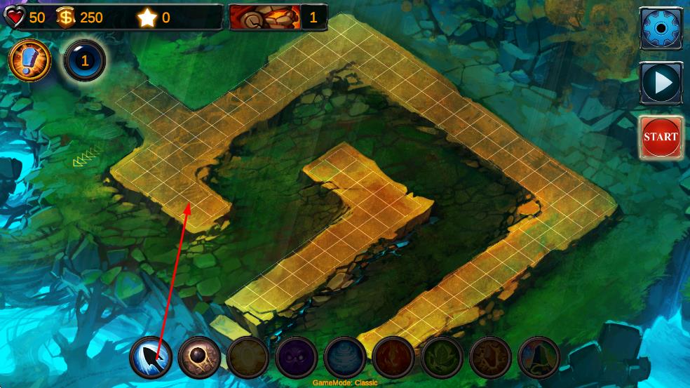 2、在游戏关卡中,从下方选择防御塔,放置到合适的路径位置,构建防御阵线。