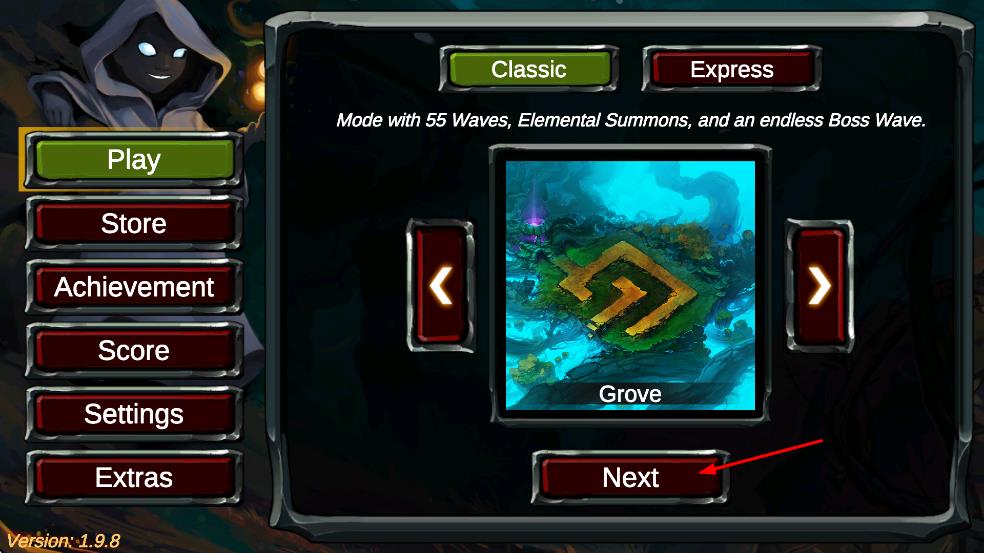 1、打开塔防游戏,点击“Play”,选择“Classic”模式,点击“Next”,进入游戏关卡。