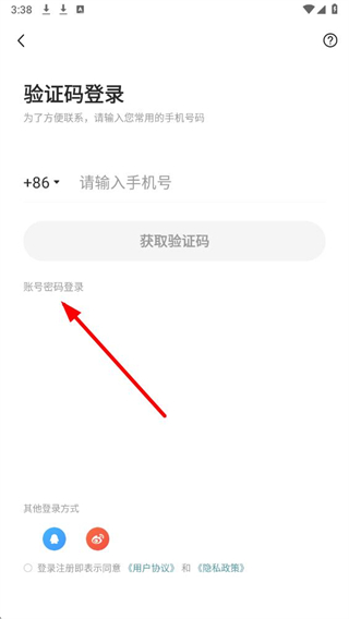 3、在验证码登录页面,找到账号密码登录选项并点击,切换至密码登录的操作界面。