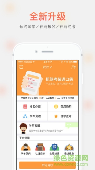 极速退款:预约试学后,学车顾问带看场地并上车试练,如对所选商家不满意,可无条件退还预约费用。