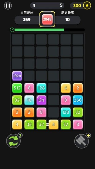 游戏玩法:将相同大小的数字方块,移动到一起;即可获得双倍的数字;
