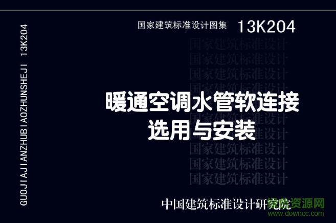 13K204 《暖通空调水管软连接选用与安装》为新编图集,本图集适用于新建、扩建和改建的民用建筑供暖、供冷工程,公称直径DN≤400、工作压力Pg≤1.6MPa,介质为水或水溶液的冷