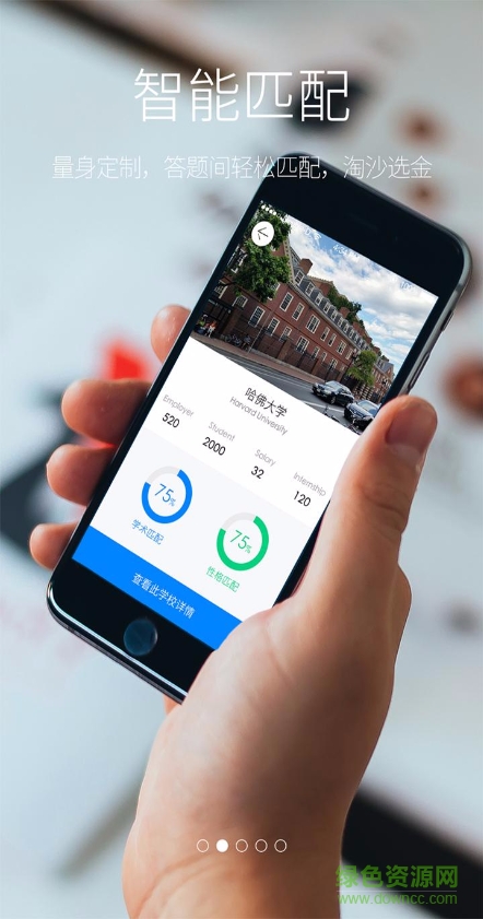 1.智能匹配:摒弃根据排名表选校的弊病,通过答题分析学生偏好,评估学生学术水平,精准匹配学校。App提供大量题库,学生也可手动输入SAT、ACT、托福、雅思等标准化考试成绩和个人成就,以进行更加精准的匹配。
