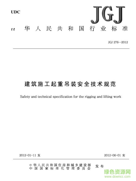 JGJ276-2012建筑施工起重吊装工程安全技术规范从2012.06.01日起实施,目前仍是可用现行标准规范,从事起重吊装行业的需要仔细阅读里面的内容,保障你的施工作业安全,欢迎下载使用。