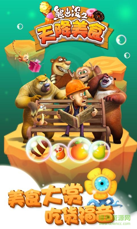 熊出没之天降美食修改版是一款非常有意思的竖屏策略防塔手游,该游戏是根据当红动画片《熊出没》改编的,游戏中玩家需要帮助熊大熊二守护水果不让光头强抢走,在这过程中你需要提升熊大和熊二的战斗力,打败来势汹汹的光头强,感兴趣的朋友快来绿色资源网下载吧!