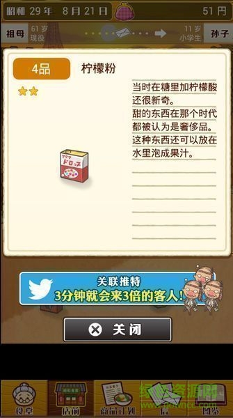 游戏的玩法流程很简单,通过点击料理按键,消耗一定的硬币,老奶奶就会在选择的时间内不停地制作料理,吸引客人前来上门,玩家只需轻轻点击客人就可以收到硬币了。除了店内回来客人,店门前也会时不时掉落一些小物品,例如奶糖、柠檬粉等这些充满了昭和年代印记的商品。通过点击回收这些物品,也同样可以获得硬币哦。