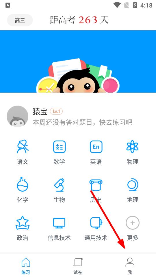 1、打开猿题库app,点击底部导航栏最右侧的我选项,进入个人相关页面。