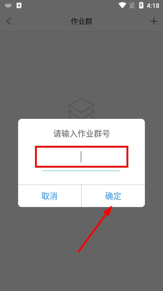 3、在作业群界面,点击右上角的加号按钮,弹出输入作业群号的窗口。