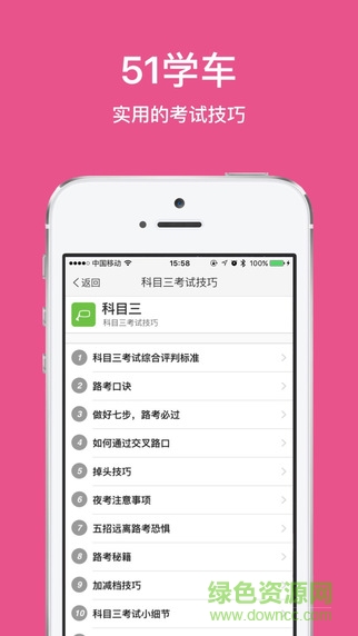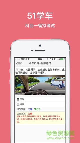 51学车app是一款非常实用的手机学车软件,包含了科目一到科目四的科目知识学习和视频讲解,还可以进行习题的练习,帮助各位学员快速通过考试,喜爱的朋友赶快到绿色资源网下载体验吧!
