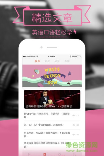 爱说口语app是由新东方英语官方推出的一款口语学习软件,提供了各种模拟使用场景对话模式,能够有效的帮助用户进行口语练习,涵盖了商务口语、生活口语、美剧电影、考试英语、事实新闻等多方面的口语练习,同事内置了电子读物,让你跟Chinglish say拜拜,需要的朋友快来绿色资源网下载吧!