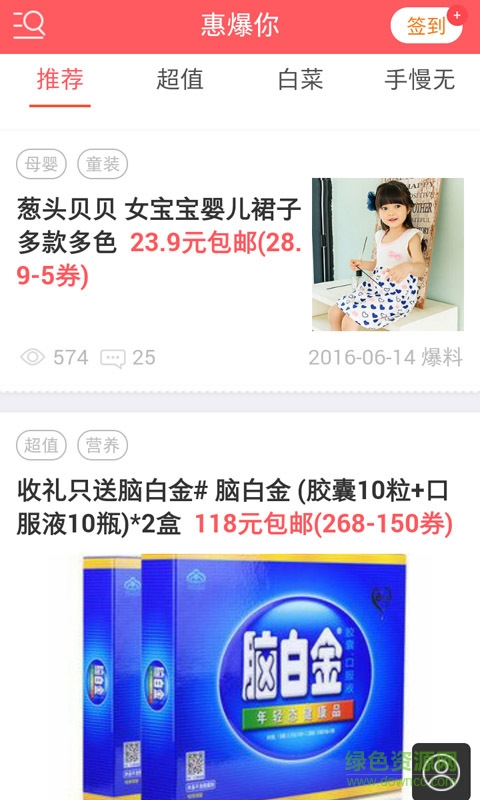 每天爆料新的商品信息,用户在各大电商网站上发现高性价比的商品也可以直接分享,并有积分领取