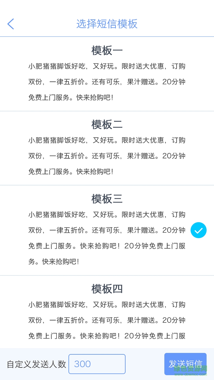 提供多种短信营销模板,商家也可以设计自己的个性模板。