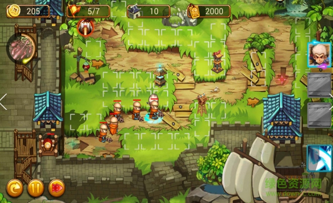 2.6种防御塔:搭配箭塔、减速、暴击、火炮、穿刺巨弩、战旗等六种不同的攻击方式,供玩家自行升级或配置。