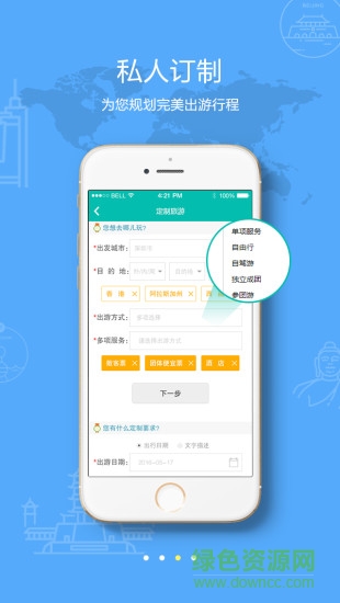 专属私人定制旅游打造自己的专属之旅, 由体验师协助用户事先了解目的地信息,由旅游管家妥善制定好出游计划,解决旅途困惑