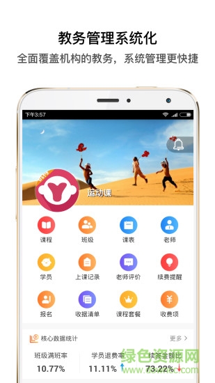 运动课机构版是一款提供给运行场馆使用的手机软件。可以在线查看学员们上课状态,管理学员资料信息,发布最新的课程内容、欢迎需要的用户来绿色资源网下载使用。