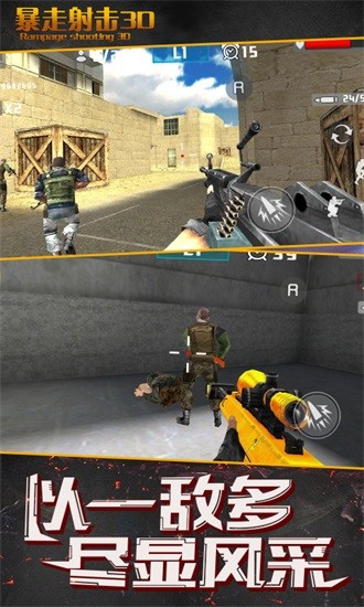 在《暴走射击3D》游戏中扮演一位技术精湛的反恐武装人员,面对全副武装的恐怖分子,击溃他们,救出人质。邪恶的恐怖分子绑架劫持了人质,你作为一位拥有高超技术和精湛技巧的反恐人员,需要在不同的场景拯救人质并击溃恐怖分子。为了完成你的任务,你必须全力以赴,合理的使用各种武器,包括手枪,步枪,机枪等。选择不同的场景并与它们作战,面对敌人无需怜悯,只需将他们击溃。