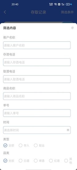 沙龙会专门为兰州万顺信息科技有限公司旗下门店工作人员提供的一款存酒软件,客户购买酒品之后可以暂时寄存在门店,也可以提供相关存酒的凭证(如客户姓名,会员卡号,存,取酒电话)取出寄存的酒品,门店人员也可以查看存取酒记录以及存取酒库存
