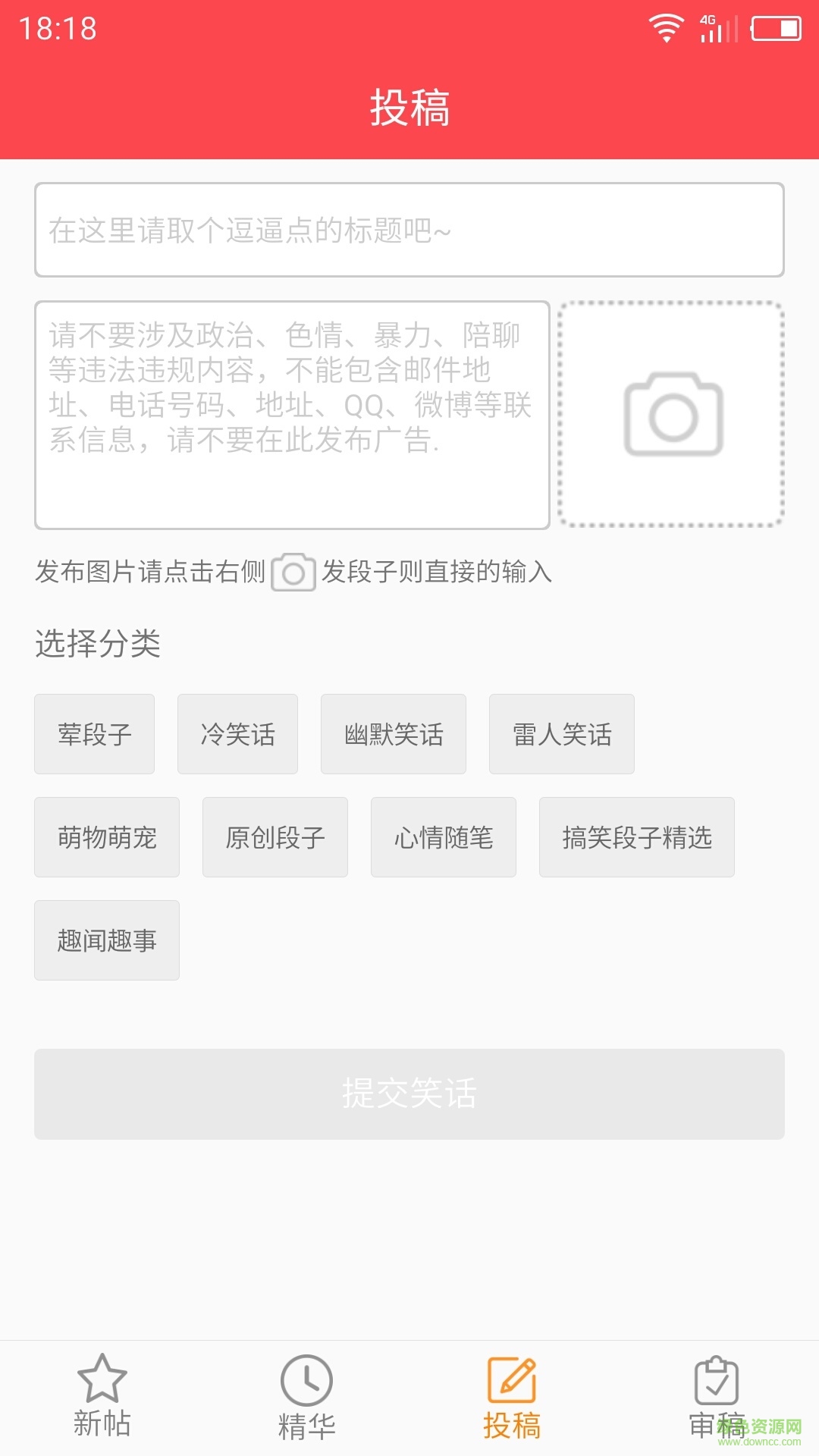 1.喷饭笑话有许多特色功能,支持投稿功能,如有精彩搞笑图文可以投稿给我们,有精致礼品等着您。