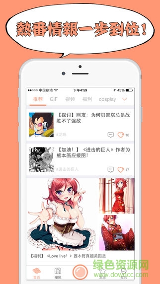 囊括海贼王、火影忍者、秦时明月、进击的巨人、银魂、东京食尸鬼、口袋妖怪、盗墓笔记、舰娘、LoveLive、fate、EVA、名侦探柯南、食戟之灵、一拳超人、野良神、终结的炽天使、K、七龙珠、剑网三、妖精的尾巴、十万个冷笑话、不良人、干物妹小埋当季新番等经典热门的二次元主题一手资讯。